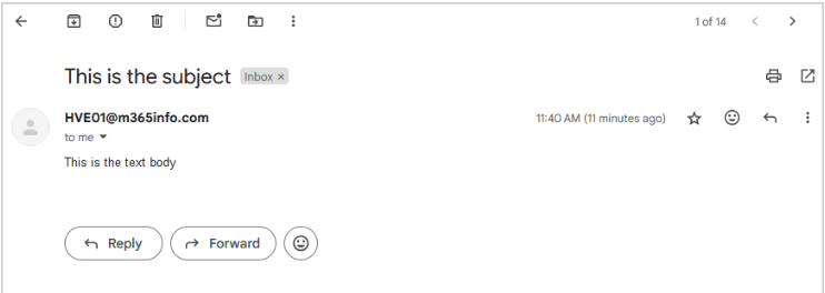 - PowerShell betikini çalıştırdıktan sonra, e-posta alıcıya gönderilir. Örneğimizde, e-posta harici bir alıcıya gönderildi.
