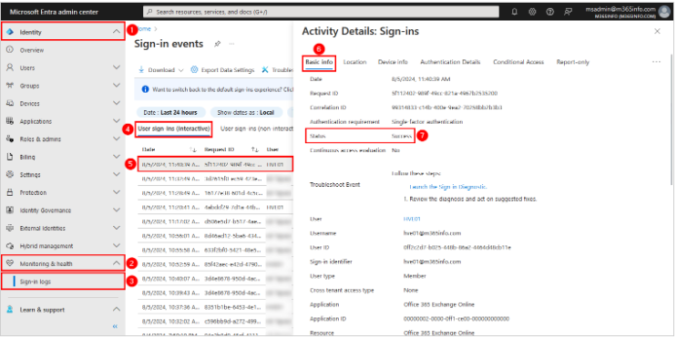8. Her şey doğru yapılandırılmışsa, Microsoft Entra ID'de durumun Başarı olarak göründüğünü doğrulayabilirsiniz.
