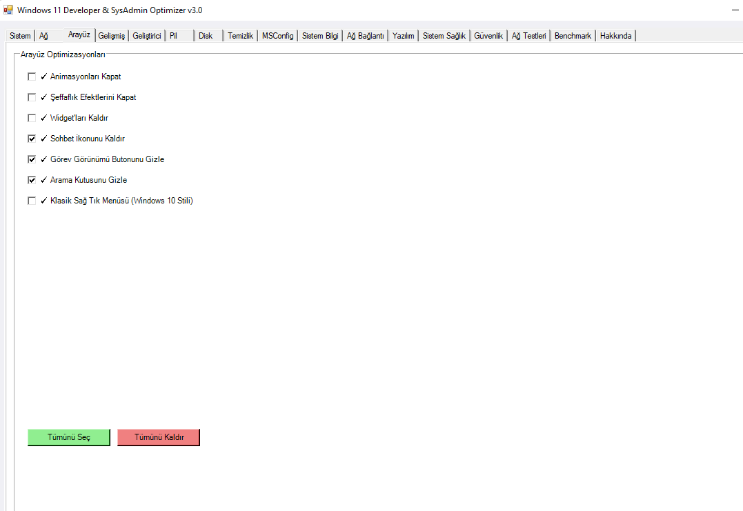 Windows 11 Developer & SysAdmin Optimization Tool Yazılımcı ve sistemci odaklı optimizasyon aracı